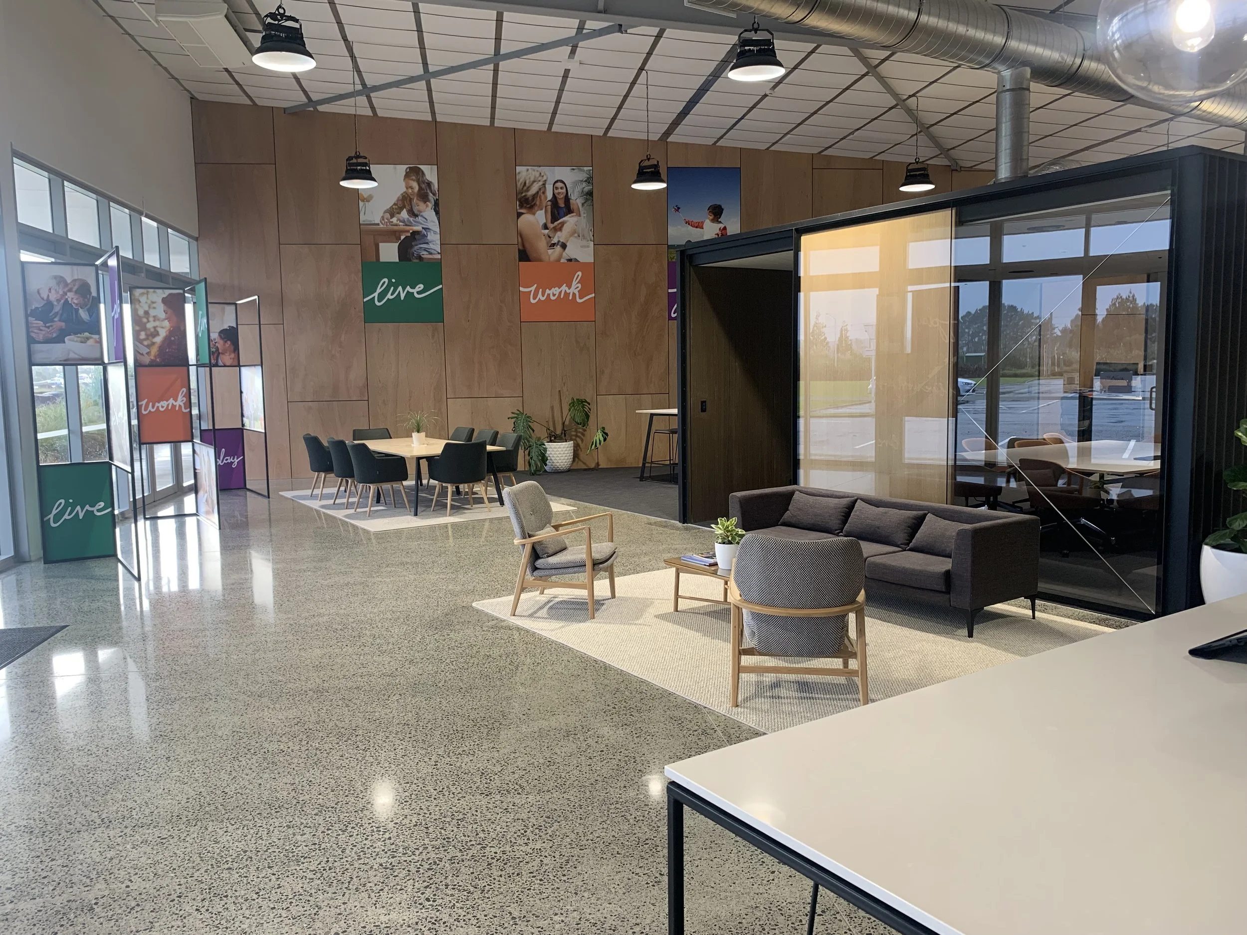 This office space fit out begun with a rough sketch and a big idea. We worked closely with the team from Te Awa Lakes and in the end recognized the type of influence the fitout needed, and therefore the need for a better design option.